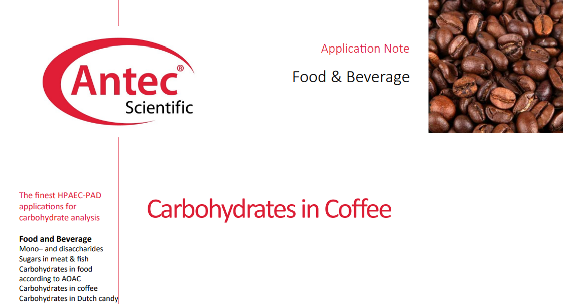 커피는 전세계에서 가장 많이 소비되는 음료 중 하나입니다. 또한 커피는 포도당 시럽 등을 통해 빈번히 식품 사기 및 위조가 이뤄지는 대표적인 식·음료 중 하나입니다. 커피의 품질 관리와 사기 방지를 위해서 국제 공식 농업 화학자 협회(AOAC International)는 AOAC Method 995.13/ISO 11292:1995를 통해 커피 내 탄수화물 분석법을 제시합니다. 이 방법은 HPAEC-PAD 시스템을 이용하는데, HPAEC-PAD; 고성능 음이온 교환 크로마토그래피 - 펄스 전류 검출 시스템은 매우 뛰어난 분리도와 검출감도를 동시에 제공하며 기존의 HPLC-RID 및 HPLC-ELSD 방법보다 우수한...