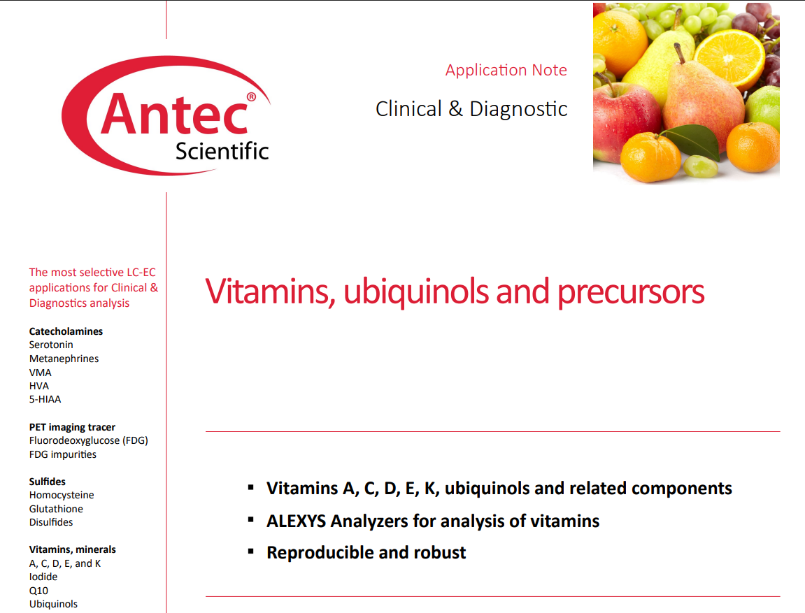 Cysteine, Homocysteine, Glutathione 등 Aminothiol 화합물과 이들의 disulfide 형태는 세포 내 산화환원 균형, 해독 작용, 단백질 대사 및 심혈관·신경계 질환과 밀접한 관련이 있는 중요한 생체지표입니다. 특히 Glutathione(GSH)와 산화형인 Glutathione disulfide(GSSG)는 생체 내 산화 스트레스 평가에 핵심적인 지표로 활용됩니다. 또한 Homocysteine은 심혈관 질환 위험 평가 지표로 널리 사용됩니다. 본 어플리케이션 노트는 ALEXYS Aminothiols & Disulfides Analyzer를 이용한 aminothiols, disulfides...