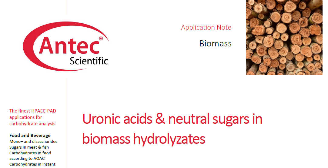 본 분석법은 Antec Scientific의 HPAEC-PAD 시스템인 ALEXYS Analyzer를 활용해 가수분해된 바이오매스 원료 내 중성당 및 우론산 분석을 시연합니다.