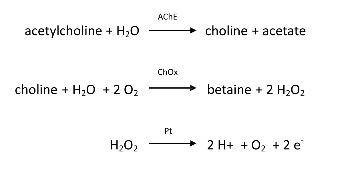 이러한 점을 고려해 본 어플리케이션 노트는 ALEXYS Neurotransmitter Analyzer를 이용한 ACh 및 Ch 분석 방법을 소개합니다. 이 분석법은 이온쌍 역상 HPLC 분리를 기반으로 하며, 분리 후 ACh는 immobilized enzyme reactor(IMER)를 통과하면서 아세틸콜린에스터레이스(AChE; acetylcholinesterase) 효소와 choline oxidase(ChOx)에 의해 과산화수소(H₂O₂)로 전환됩니다. 최종적으로 과산화수소는 백금(Pt) 전극이 장착된 SenCell을 통해 전기화학적으로 검출됩니다.